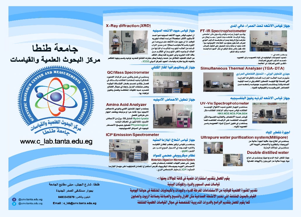 ويعتبر مركز البحوث العلمية والقياسات بجامعة طنطا هو معمل ذو طبيعة علمية متخصصة تطبيقية وعلى مدى حوالي ثلاثة عقود استمر المعمل في القيام بدورة محققا لرسالته ومتماشيا مع رسالة جامعة طنطا التي قامت كمنارة لتنمية اقليم الدلتا. وتمشيا لهذه الرسالة وضعت الجامعة استراتيجية للتنمية المستدامة بالمركز من حيث توفير الاحتياجات الاساسية والكوادر والتدريب وكذلك تطوير وتجهيز بنية المركز التحتية وقد أثمر ذلك عن حصول مركز البحوث العلمية والقياسات لجامعة طنطا على العديد من المشروعات.